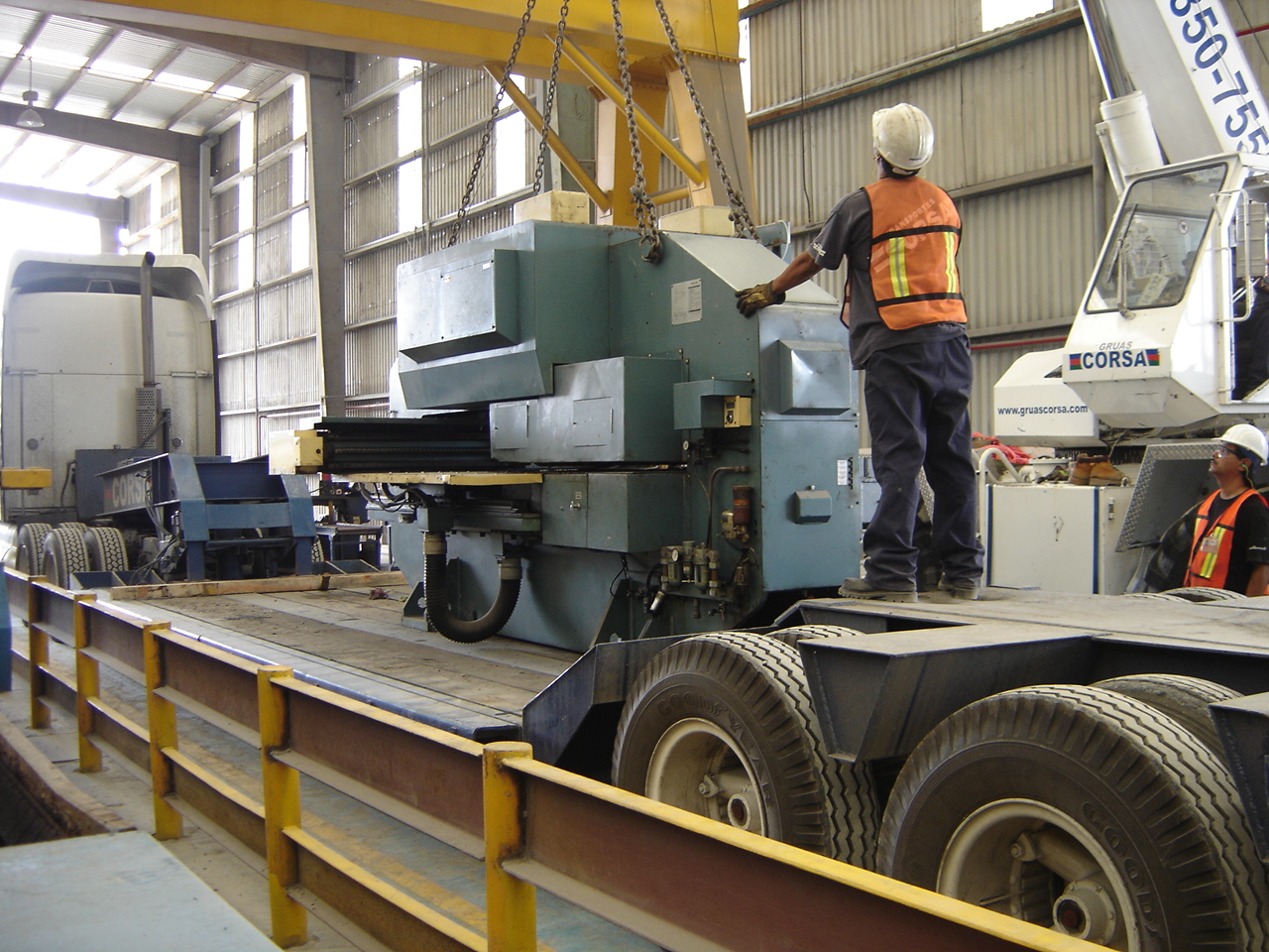 Installation of crane and steel cutter machine